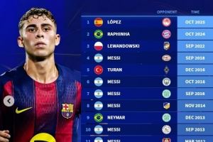 巴萨球员在欧冠曾16次上演帽子戏法:梅西8次做到,费尔明在列