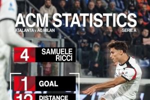 体育资讯10月29日讯 意甲第9轮比赛,里奇远射破门,斩获米兰生涯处子球,最终米兰客场1-1战平亚特兰大。米兰官方社媒晒出里奇本场比赛的数据,他出场97分钟打进1球,跑动距离12公里,传球成功率97%,完成4次解围。