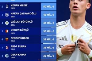 9、卡迪奥卢(费内巴切,2024年):身价3000万欧元
